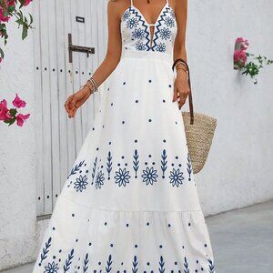Multicolor Boho Women's Printed Cami Maxi Dress Hawaiian Style