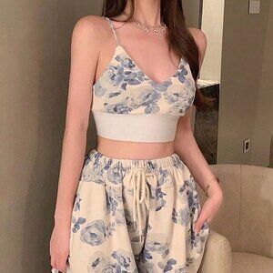 Multicolor Boho Women's Printed Short Camisole Top & Strapless Wide-Leg Pants