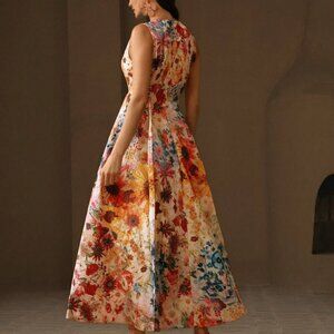 Multicolor Boho Women's Round Neck Floral Waist Fitted A-Line Dress
