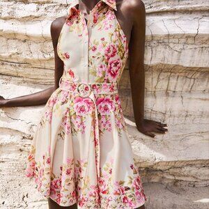 Multicolor Boho Women's Sleeveless Oversized Peony Floral Print Mini Dress