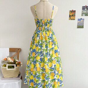 Multicolor Boho Women's Spaghetti Strap V-Neck Knotted Waist A-Line Midi Dress