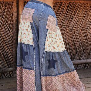 Multicolor Boho Women's Style Country Patchwork Plaid Loose Wide-Leg Casual Jean