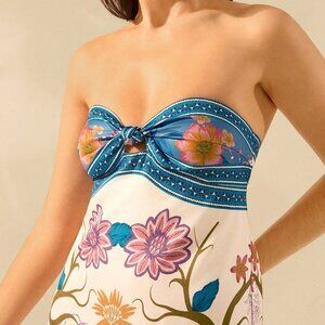 Multicolor Boho Women's Tropical Floral Print Sleeveless Tie Front Beach Dress
