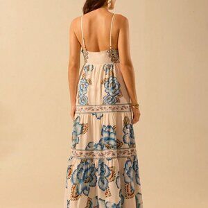 Multicolor Boho Women's Tropical Print V-Neck Long Camisole Dress Beach Dress