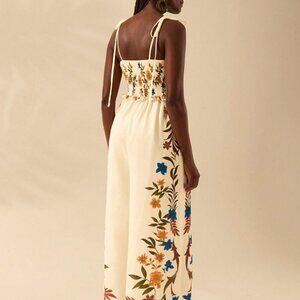Multicolor Boho Women's Tropical Print Vacation Ruffle Wide Leg Jumpsuit