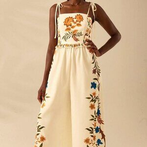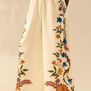 Multicolor Boho Women's Tropical Print Vacation Ruffle Wide Leg Jumpsuit