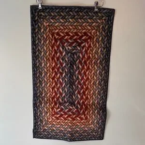Stylish braided rug with a multicolor pattern. Features shades of red, brown, and gray blue. Measurements are 20 x 30. This rug is brand new never used. I probably should’ve returned it. One thing I noticed is how they finished up the braid seam on the edge. It’s the last picture. Bundle with other items from my closet for a better savings or make me an offer.