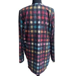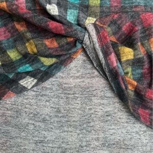 Multicolor Buffalo Check Twist Front High Low Long Sleeve Top