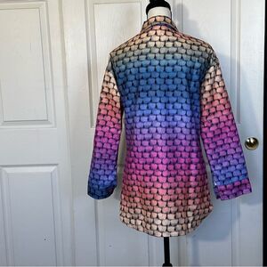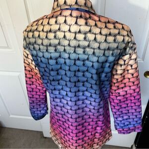 Multicolor Button-down. Could be worn as jacket or shirt. Medium weight. 100% cotton. New without tags. Approximate measurements are 29 length, 19 armpit to armpit, 21 slight drop shoulder to cuff. Never worn. No tags. Size Large