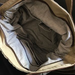 Not Zara, listed as Zara for exposure. Purchased at a boutique. Leather trim and removable/adjustable strap. Tons of compartments and space inside. Worn a handful of times, in great condition! Approx 4" handle drop. At the widest section, the width is about 19" and at the highest, it's about 16".