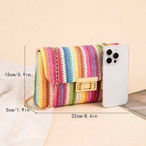 Multicolor Casual Women's Chain Shoulder Bag Small Square Woven Colorful Bag