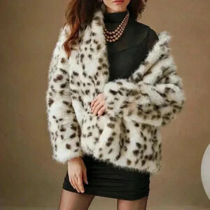 Multicolor Casual Women's Chic Leopard Texture Fluffy Short Jacket