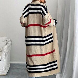 Multicolor Casual Women's Classic Striped open front sweater Cardigan