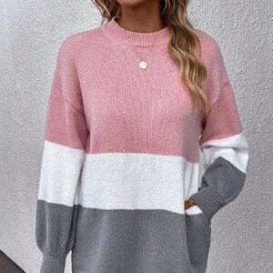 Multicolor Casual Womens Color Block Drop Shoulder Sweater Dress