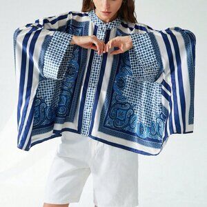 Multicolor Casual Women's Color Block Print Cuff & Hem Design Blouse