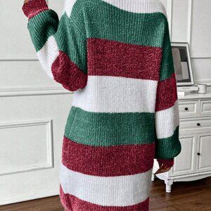 Multicolor Casual Women's Color lock Striped Lantern Sleeve Sweater Dress