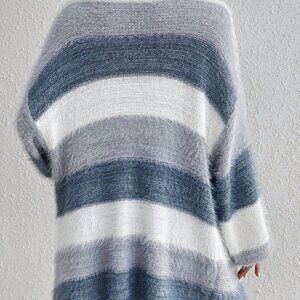 Multicolor Casual Women's Drop Shoulder Open Front Fluffy Knit Duster Cardigan