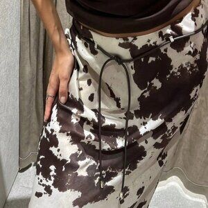 Multicolor Casual Women's Elegant Long Midi Satin Skirts with Animal Print