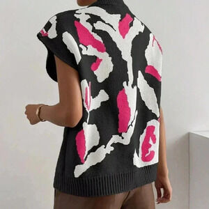 Multicolor Casual Women's Full Print V-Neck Loose Knitted Sweater Vest