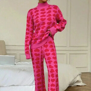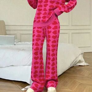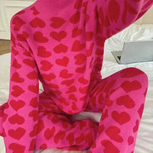 Multicolor Casual Women's Heart Design & Versatile Knitted Sweater