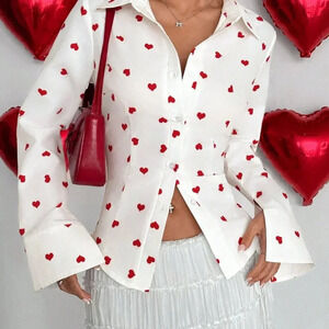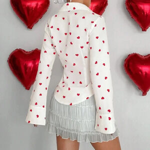Multicolor Casual Women's Heart-Shaped Fitted Blouse