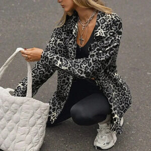 Multicolor Casual Women's Leopard Print Front Button Long Sleeve Jacket