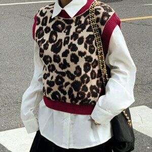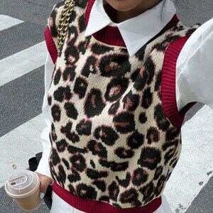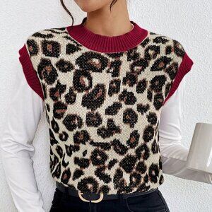 Multicolor Casual Women's Leopard Print Knit Sweater Vest