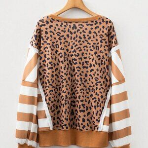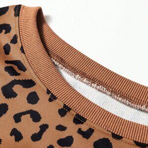 Multicolor Casual Women's Leopard Print Round Neck Shirt