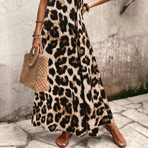 Multicolor Casual Women's Leopard Print Sleeveless Dress