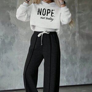 Multicolor Casual Women's Letter Print Hoodie Top And Pants Set