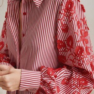 Multicolor Casual Women's Loose & Striped Patchwork Embroidered Shirt