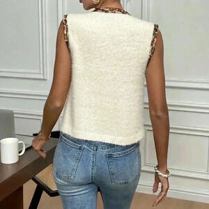 Multicolor Casual Women's Patchwork Leopard Print V-Neck Lace-Up Knitted Vest