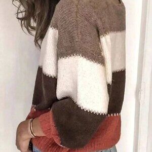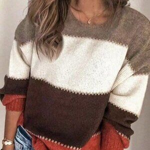 Multicolor Casual Womens Plus Color Block Drop Shoulder Sweater