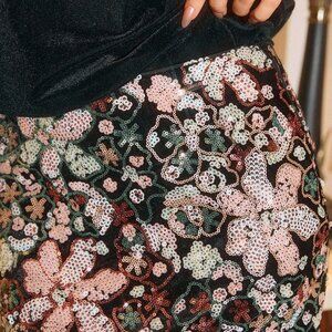 Add a touch of glamour to your party look with this mini skirt, featuring intricate sequin embroidery in a vibrant multicolor design. This skinny, bodycon style skirt is perfect for making a statement, with a flattering mini length that's sure to turn heads.