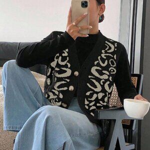 Multicolor Casual Women's Single Breasted V-Neck Leopard Print Knit sweater Vest