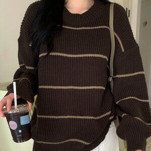 Multicolor Casual Women's Striped Loose Fit Crew Neck Sweater