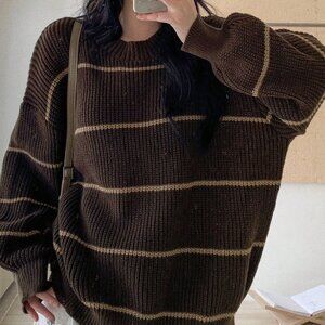 This casual sweater features a multicolor striped design, offering a loose fit for comfortable wear. With its crew neck and long sleeves, it’s ideal for late fall. The regular length provides a versatile silhouette, making it a great addition to any casual wardrobe.