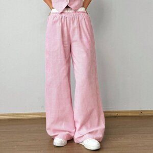 Multicolor Casual Women's Striped Sleeveless V-Neck Top And Pocket Pants Set