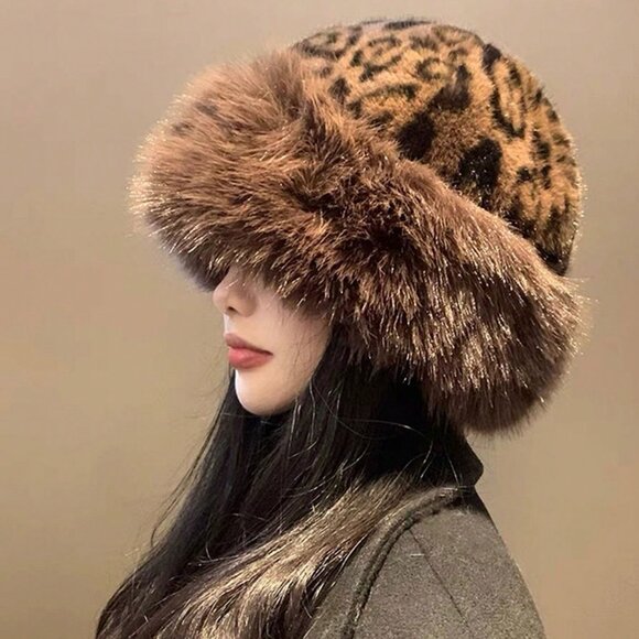 Stay warm and stylish with this multicolor cozy faux fur leopard hat, featuring leopard print on top and a solid fur trim on the egde. The hat with pair lovely with your teddy coat and winter boots!