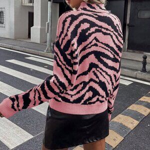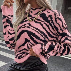 Multicolor Casual Women's Zebra Pattern Batwing Sleeve Pullover Sweater