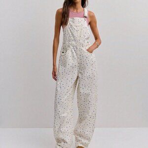 Multicolor Casual Women's ditsy Floral Print Wide-Leg Denim Overalls jumpsuit
