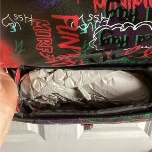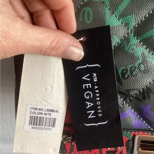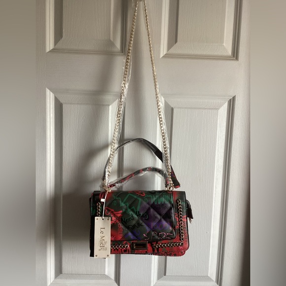 Stylish and vibrant, the Multicolor Chain Strap Bag is perfect for any occasion. Featuring a unique blend of red, green, and black, this bag adds a pop of color to your outfit. The chain strap offers a chic touch, making it a must-have accessory. NWT Le Miel brand