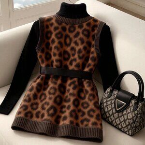 Multicolor Chic Leopard Print Womens Knitted Cardigan Vest Top