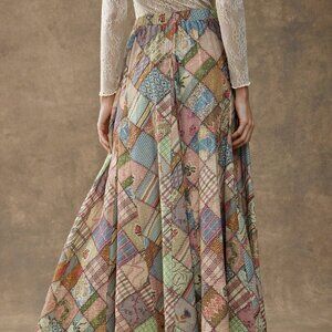 Elevate your style with this vibrant patchwork print maxi skirt, featuring a pop of color that goes with any chic outfit. With a high waist and regular fit, this long skirt offers a comfortable and flattering silhouette. Its A-line and flared shape creates a beautiful, flowing look that's perfect for dressing up or down.
