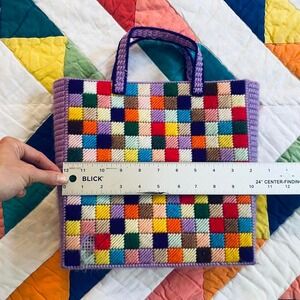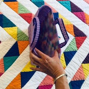 Purple and multi-colored colorblock handcrafted purse with a touch of boho charm #boho #festivalvibes