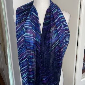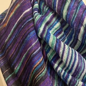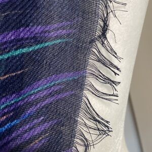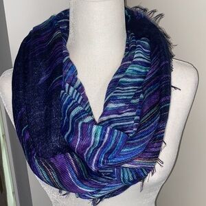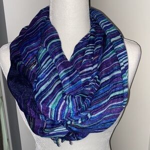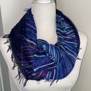 Multicolor Purple Blue Teal Black Stripe Bohemian Raw Edge Infinity Scarf