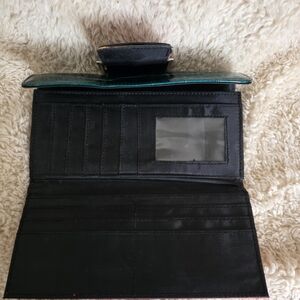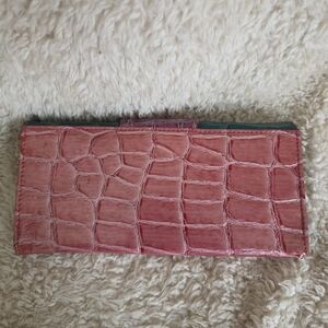Stylish and vibrant, this multicolor croc-embossed wallet is perfect for any occasion. Featuring shades of pink, teal, and purple, it adds a pop of color to your outfit. The sleek design and bold buckle make it a standout accessory.