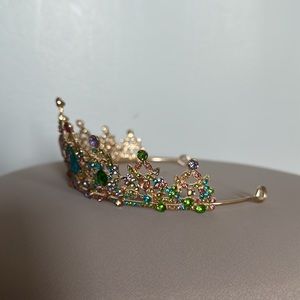 Good quality multicolor crown. Comes with gold bobby pins. Excellent condition, worn once for Halloween. Great for costumes, birthdays, prom, etc.
