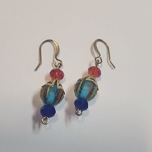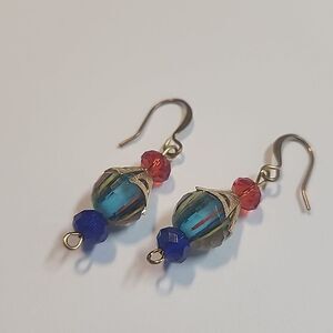 Multicolor Crystal Earrings with Gold Tone Metal Minor tarnish at hooks Inventory Location Box 2