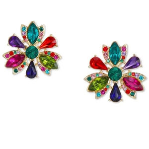 Bring brightness to your style with colored crystals and stones on these flower-shaped button earrings